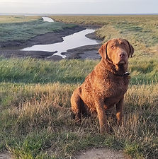 Sterling has that old classic Chesapeake look as well as a confident and cocky attitude. he who must say hello to every dog and person he can. Another shining example of character from Susqudilla. From an early age he has lapped up the attention from his travels from the USA, to shows across the UK & Europe. He also takes part in a spot of pigeon shooting too...